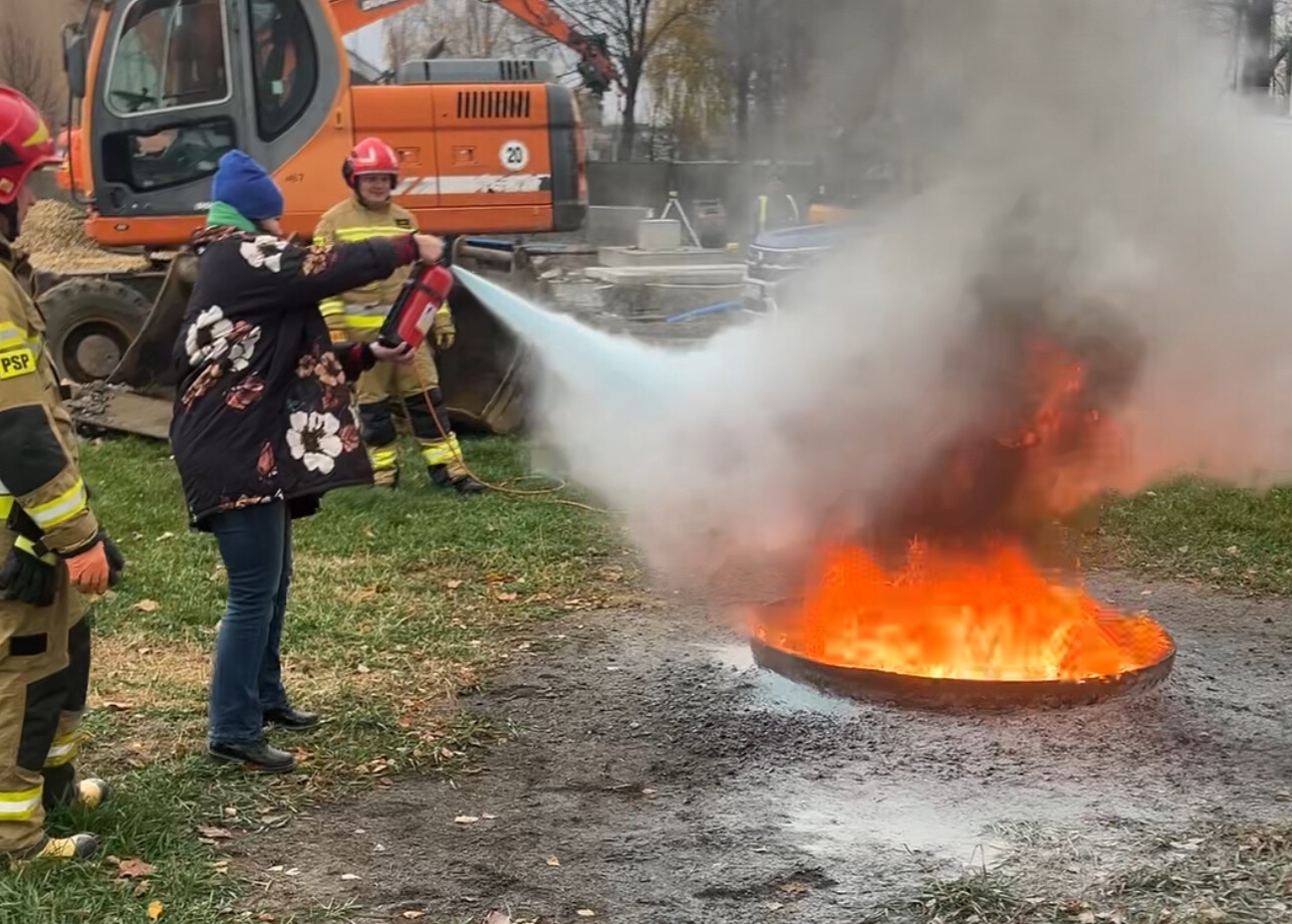 ✅ Pokazy i ćwiczenia z prawdziwym sprzętem (gaśnice, koce, detektory)